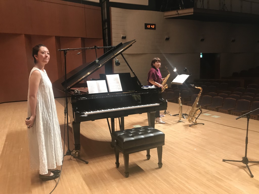 楽器の響きを捕まえるのとは全く違った感覚で、自分の声が届くポイントをホールの職員スタッフの皆さんに教えて頂きながらのリハーサル。