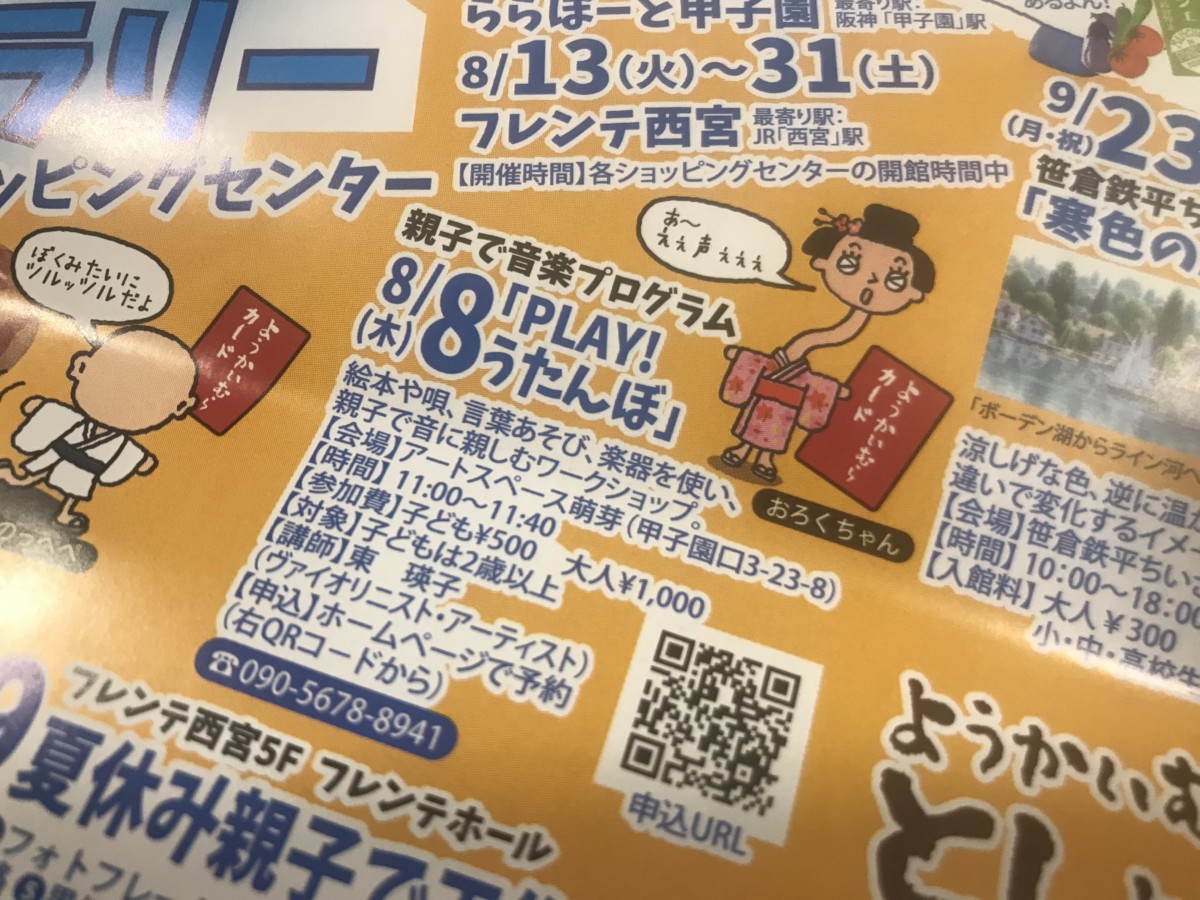 「みやたん」をご存知ですか? 西宮市の観光協会のキャラクターで妖精。水色の体に丸いお顔(されどドラえもんにはあらず)。 先日、兵庫県の西宮市観光協会から、夏のイベント案内のリーフレットが送られてきました。 私の音楽ワークショップがトライアルという形でスタートした2018年の秋、協会職員さんがこの取り組みにつ...